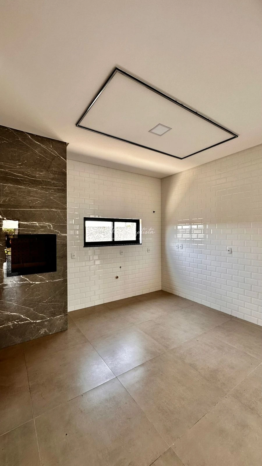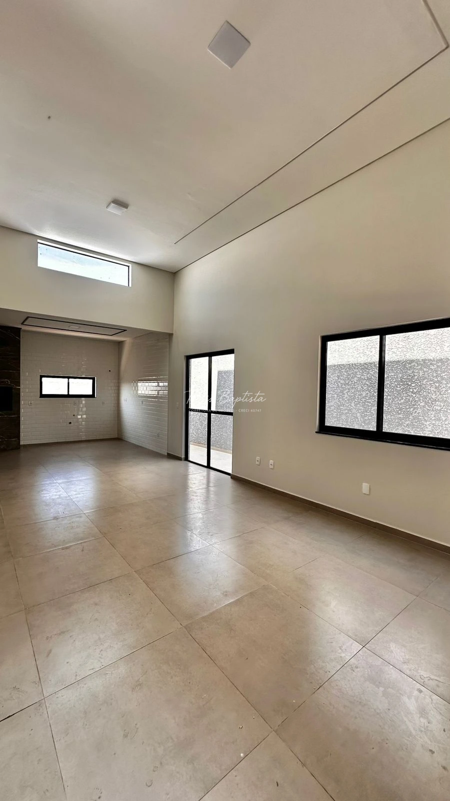 Sala ampla e bem iluminada com pé direito duplo