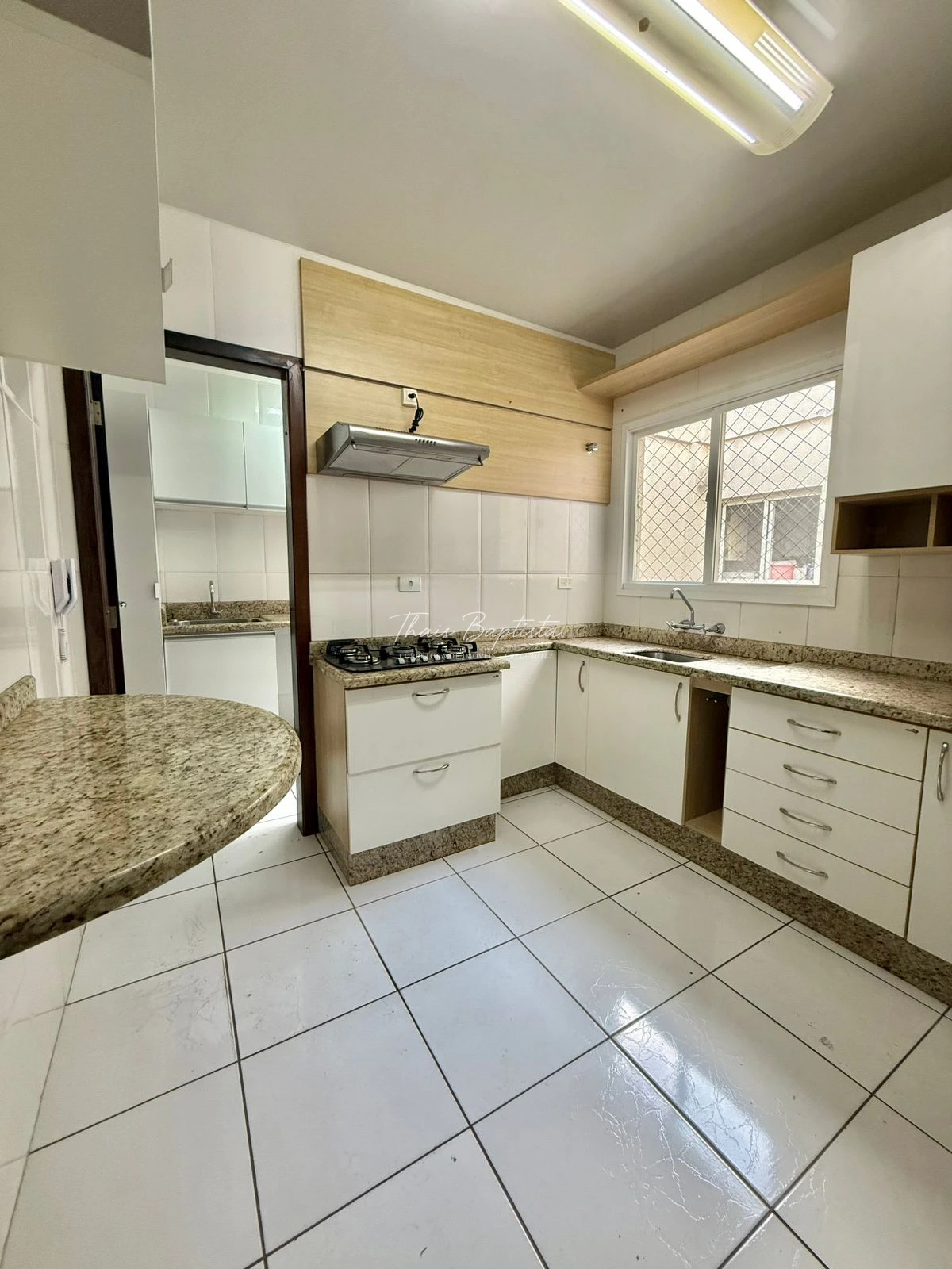 Cozinha com móveis planejados, fogão cooktop e depurador de ar;